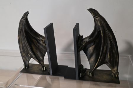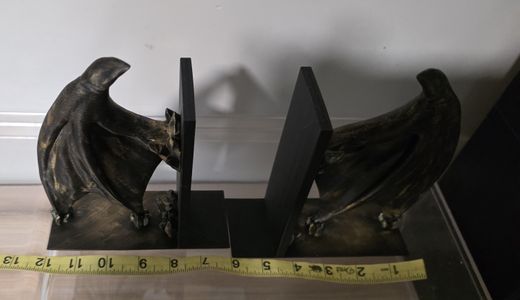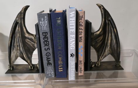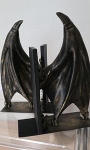 1 savesDragon Wing bookends. 2 per set. 3D printed, then Finished gold run and buff, paint and top coat for an antique look. These are lightweight bookends for decor purposes. They stand approx 8 inches tall.